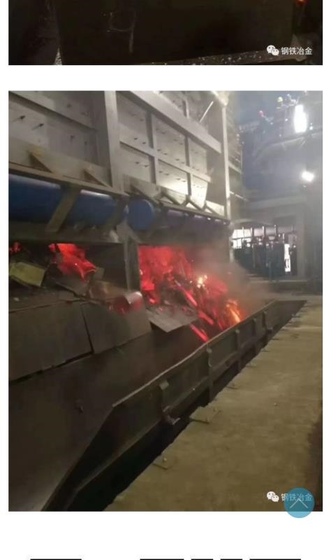 工藝流程:廢鋼天車吊裝→鏈板機→振動輸送機→預熱區→副燒嘴預熱區→主燒嘴預熱區→廢鋼斗→電瓶車→加料跨→轉爐。